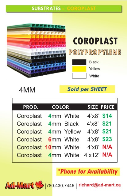 Coroplast mm White 4’x8’ $23